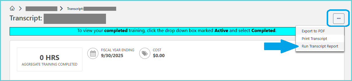 3. Select the three-dot ellipsis in the upper right corner of your Transcript. Then select Run Transcript Report.
